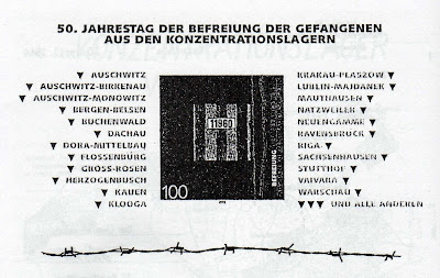 Znaczek pocztowy z wykazem 23 Obozów Koncentracyjnych Głównych „Hauptlager”, wśród których wykazany jest KL Warschau, opublikowany w Światowym Katalogu Znaczków Michel, blok 1995