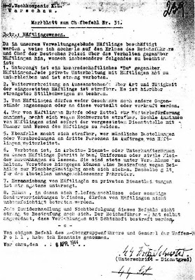 Raport Wydz. Bezpieczeństwa Oddział Informacyjno-Polityczny Nr 237, z dnia 20 grudnia 1943 r. (AAN, Delegatura RP, sygn. 202/11-21) „W myśl ostatnich poleceń centralnych niemieckich władz bezpieczeństwa za wszystkie akty dywersji i terroru wobec Niemców konsekwencje ponosić będzie Warszawa, jako ośrodek dyspozycyjny wszystkich ruchów niepodległościowych”