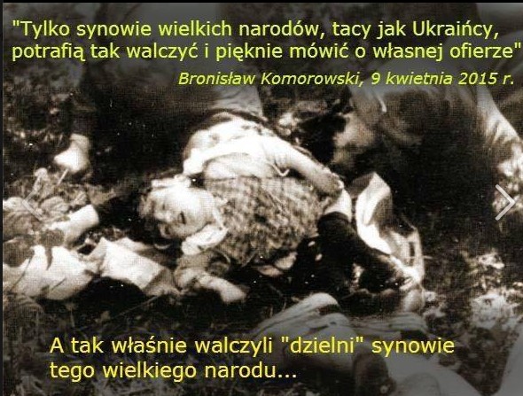 „Cofam wszystko, co dotąd powiedziałem o poparciu dla Ukrainy. Zrozumiałem, że Ukraina nie ma żadnego względu dla polskiego narodu. Myślę o masakrze na Wołyniu, o masowym mordzie na 100 tysiącach Polaków. Nawet Niemcy faszystowskie nie zadały nam tyle cierpień, ile uczynili nam Ukraińcy.”
