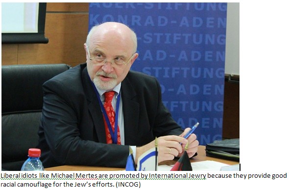 Thus the project of knocking down European borders and making Whites a minority in their own countries in order to secure perpetual safety for Jews is a necessity that supersedes any possible negative consequences that may result from that project, and so Mertes enthusiastically and energetically works toward that end.