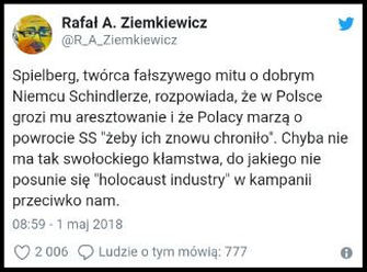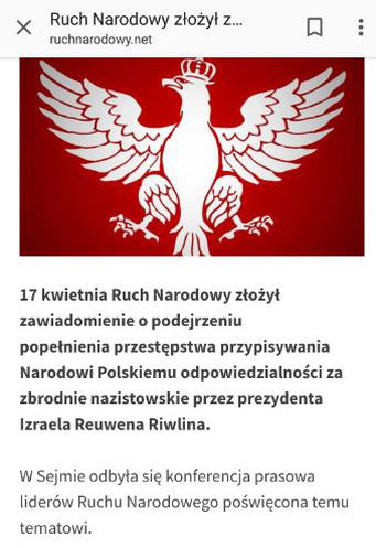 „Polacy pomagali w nazistowskiej eksterminacji – w oparciu o wypowiedź Rivlina napisał Times of Israel, wyraźnie sugerując, że nowelizacją ustawy o IPN, która w rzeczywistości jest prawniczym bublem, Polacy starają się zamazać niechlubne karty swojej historii. I taka zapanowała narracja w relacji z żydowskiego Marszu Żywych, w którym maszerował prezydent naszego kraju, posłusznie dorzucając do
