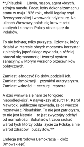 Jedynym motywem działania marszałka była chęć przejęcia władzy – dla siebie i swojej jeszcze bardziej kurduplowatej masońskiej sitwy. Udowodniły to aż nadto kolejne lata.