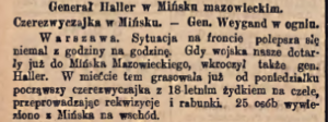 14 Komunikat sztabu generalnego wojsk polskich z dnia 24. Sierpnia, „Gazeta Polska” 1920, nr 194, s. 1; Żydowski patrjotyzm, „Postęp” 1920, nr 197, s. 1; Po zajęciu przez Polaków …, „Gazeta Świąteczna” 1920, nr 2066, s. 6-7.