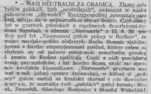 Na sprawę żydów polskich, zwłaszcza w wieku poborowym, opuszczających w czasie wojny polsko-sowieckiej Polskę zwróciła uwagę również prasa zachodnia i gdańska. Informowano w niej m.in. o zapchanym dezerterami-żydami Sopocie, a w dniu 12 sierpnia 1920 roku gazeta „Vorwaerts” w artykule pt. „Nieproszeni goście polscy w Berlinie” pisała o napływających do Berlina tłumach osób uchylających się od służby wojskowej, które w większej części powiększyły „armję przemytników”, na co gazeta przytacza przykład skazania za kradzieże „polskich” gości o nazwiskach: Naok, Struschik, Abraham Rudowicz, Mendel Weisskohl24. Również „Kurjer Warszawski” donosił, że na Górnym Śląsku znalazło się 2 tysiące (…) dezerterów-żydów, których komisja aljancka postanowiła wysłać z powrotem do Sosnowca25.