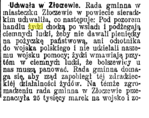 20 Uchwały w Złoczewie, „Gzeta Świąteczne” 1920, nr 2070, s. 1-2.