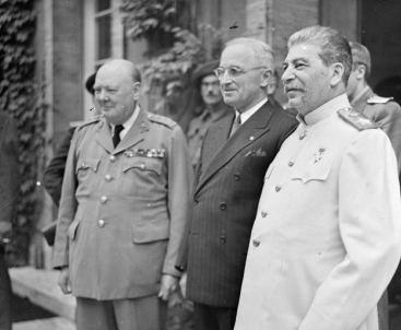 British Prime Minister Winston Churchill, American President Harry Truman and Soviet Premier Joseph Stalin at the Potsdam Conference, codenamed ‘Terminal’, on 23 July 1945.
