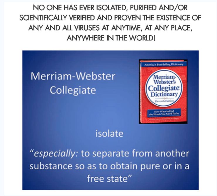 THERE IS NO EVIDENCE of the EXISTENCE for ANY VIRUS ISOLATED by ANYONE ANYWHERE in the WORLD!