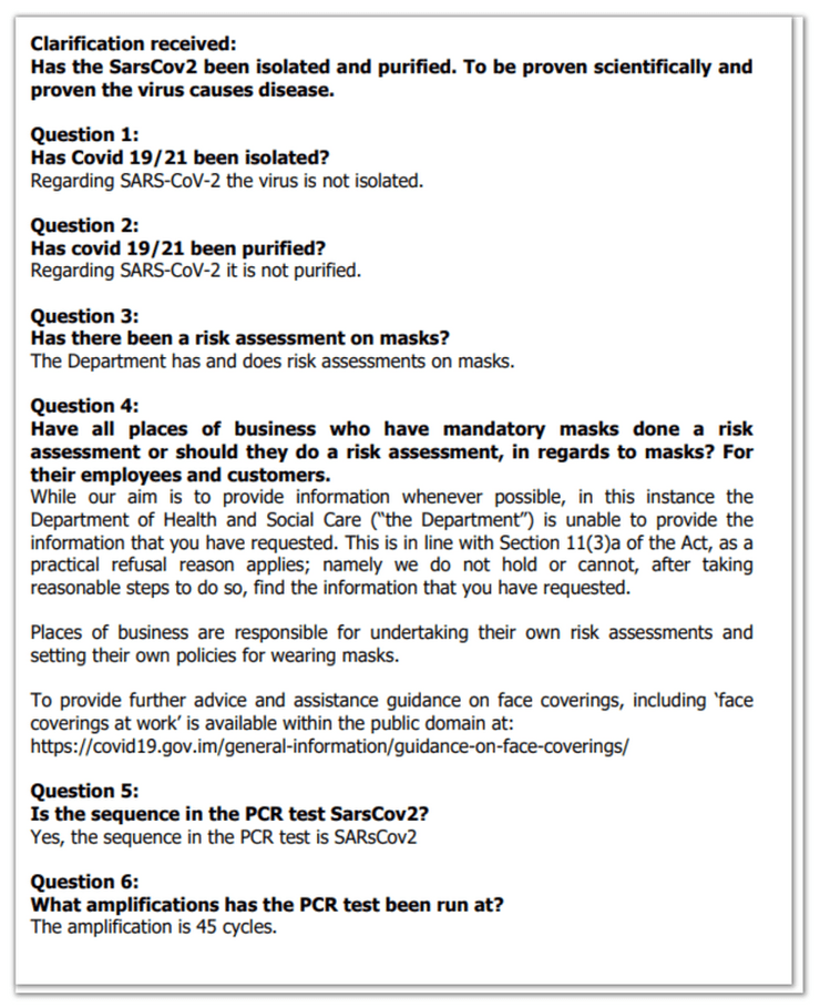The following written letters are responses from the following governmental and/or institutional officials that were obtained under the “Freedom of Information Act” or FOIA from the U.S., India, Republic of South Africa, New Zealand, Australia, U.K., England, Scotland, Wales, Ireland, Denmark, Norway, the Netherlands, Sweden, Spain, European CDC, Slovenia, Czech Republic, Ukraine, Columbia, Uruguay, Italy, Portugal, Brazil, Republic of Colombia, Ilse of Man, Philippines, etc., plus emails from Germany’s Robert Koch Institute (RKI) and several other so-called “virus isolation authors or researchers”.