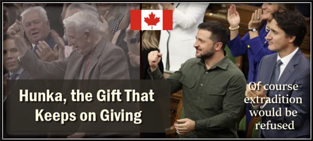 ER Editor:  A reminder that Putin addressed head-on with Tucker the Yaroslav Hunka affair in the Canadian Parliament last week. TASS has picked up on Canada’s recent refusal to extradite the man. Hunka was tried in absentia for genocide of civilians and found guilty.