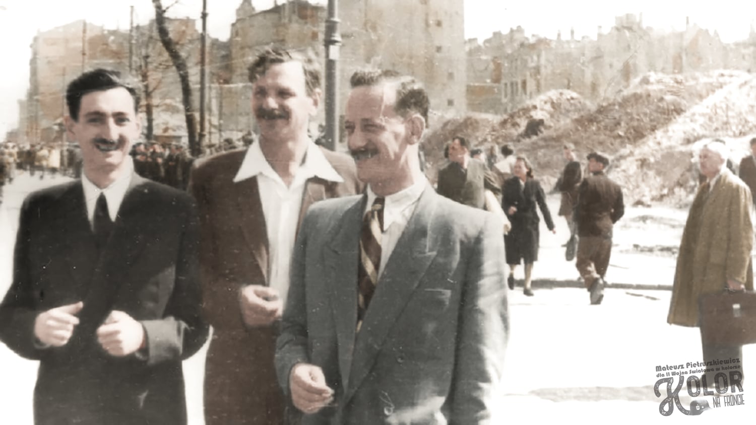 Na zdjęciu: powojenne obchody rocznicy powstania w getcie, obchodzone z pompą przez komunistów. Pierwszy pomnik getta odsłonięto już w 1946 r., a następny – w 1948 r., podczas gdy Powstańcy Warszawscy na swój musieli poczekać jeszcze 40 lat. Koloryzacja: Kolor na froncie